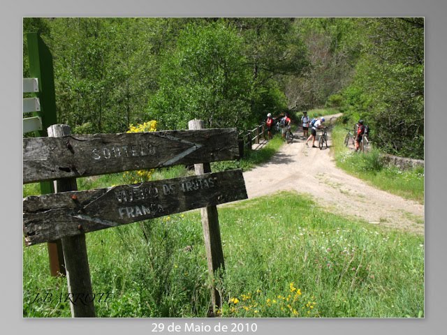 Era madrugada quando decidimos partir, para percorrer cerca de 300km de Braga até Rio de Onor. Em pleno Parque Natural de Montezinho, aldeia raiana dividida pela fronteira, sendo ainda uma aldeia comunitária. Tínhamos planeado sair pelas 9,00h. Após as despedidas e fotos da praxe, lá arranca-mos mais as respectivas montadas, Jorge Barrote (Cannodale RZOne Twenty), Zé Portela (Scott Ramson 20), Armando Paredes (Cannondale Jekyl 800), Flávio Silva (Scott Ramson 20), Joaquim Lopes (Lapierre Spicy 514) e o "caloiro" Eduardo Costa (Lapierre Zesty 516). Seria uma etapa para cerca de 90Km e um acumulado de aproximadamente 2500mt, entre Rio de Onor e Vinhais. Para começar não estava mal de todo. Saímos com tempo ameno, ora ameaçava chuva fraca ora abria o sol, estava mesmo bom para pedalarmos. Mas este tempo depressa se definiu, começando o sol a espreitar mais e começar a deixar as suas marcas, quer no esforço que nos estava a causar, quer no bronzear à "trolha". Nas paragens que íamos fazendo para comer íamos aplicando protector. À saída desta aldeia, o percurso apontava para noroeste, ou seja começávamos parte da travessia do lado espanhol, começando a subir até Stª Cruz de Abranes. A partir daqui iríamos percorrer parte da Serra de Calabor, para depois descermos até à aldeia que lhe dá o nome, por zonas a perder de verde. Logo de seguida já sem dar por ela, estávamos novamente do lado português, passando pelas minas de Portelo em pleno parque natural de Montezinho. Minas que ainda à bem pouco tempo foram notícia, por as suas areias escorrem para o rio Sabor. Estes escombros altamente tóxicos, arrastaram consigo areias carregadas de arsénio. Para chegarmos até ao alto, conhecido pelas quatro estradas, teríamos que subir e subir a um ritmo bem lento, e com sol a dar nas costas e a fome e sede apertar. Logo que atingimos estas quatro estradas, a partir daqui iríamos dar início a uma descida alucinante, mas antes ainda avistamos a aldeia de Montezinho ao longe, e continuamos a descida num serpentear até cruzarmos uma ponte sob o rio Sabor.